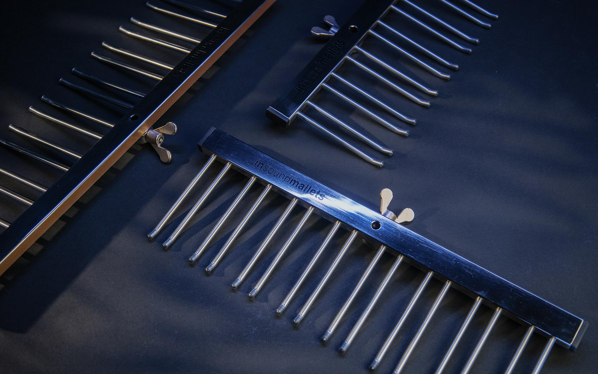 Just like any other Insoundmallets product, the materials we have used are of exceptional quality. The racks are built over a solid plate of stainless steel, the bristles are also made of stainless steel and covered by a polychloride rubber. The finished item is hand polished to create a mirror effect.