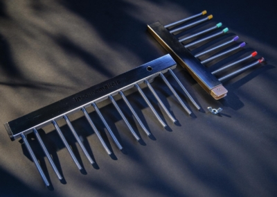 This rack consists of 2 individual parts (2 mini racks) that when combined, make a bigger rack. The larger part is made of 6 pairs of bristles for 6 pairs of mallets. The smaller part is made for 4 pairs of mallets.