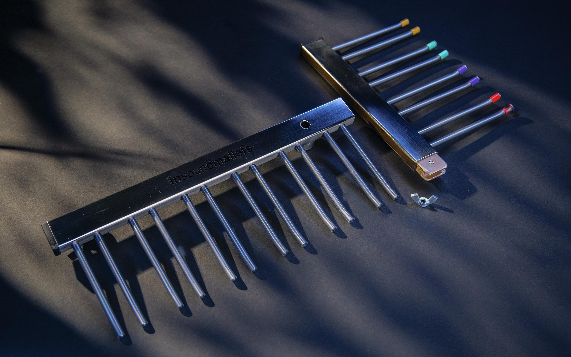 The RackPro offers a unique experience. It has been designed with two different zones where you can place your mallets according to your preferences. It can also be made smaller if you don’t need the whole rack. Because it is convertible, it can easily be placed into your bag for easy transportation. The RackPro is the most versatile rack you will find on the market.